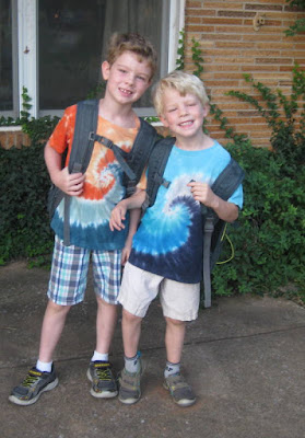 Actually, ragweed is in the air, and we are all suffering from it. And we are, more or less, all suffering from our change back to full routine with no naps. But school started Aug. 17 for the boys and Aug. 22 for me. Images of last year and the year before (grades 0 and -2) and the year before that, should you want to see that they are growing up. Somewhere around there's a picture of my new red shoes for 2013, which I still consider my new red shoes.